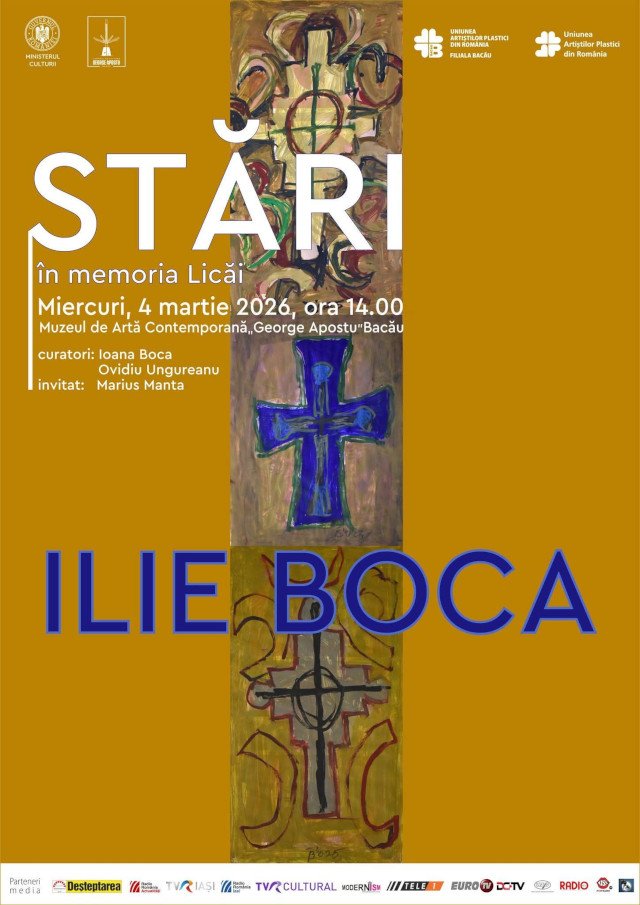Muzeul de Artă Contemporană al Centrul de Cultură „George Apostu” din Bacău organizează, în data de 4 martie 2026, ora 14:00, expoziția personală a artistului Ilie Boca, intitulată „STĂRI. În memoria Licăi”.