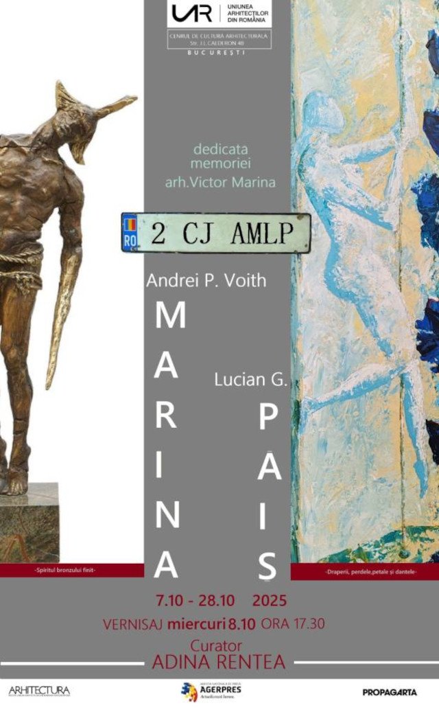 Expoziţie de pictură şi sculptură cu doi artişti clujeni, Lucian George Paiș şi Andrei Marina, la Uniunea Arhitecţilor din România. Evenimentul este dedicat memoriei arh. Victor Marina.