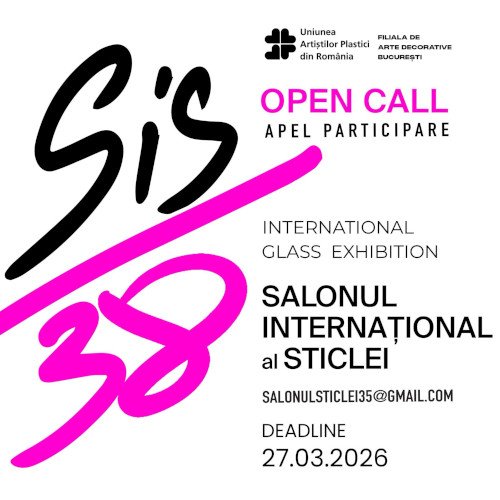 Uniunea Artiștilor Plastici, Filiala Arte Decorative, organizează cea de-a 38-a ediție a Salonului Internațional al Sticlei, care va avea loc în perioada 30 aprilie – 24 mai 2026, la Galeria Orizont, București.