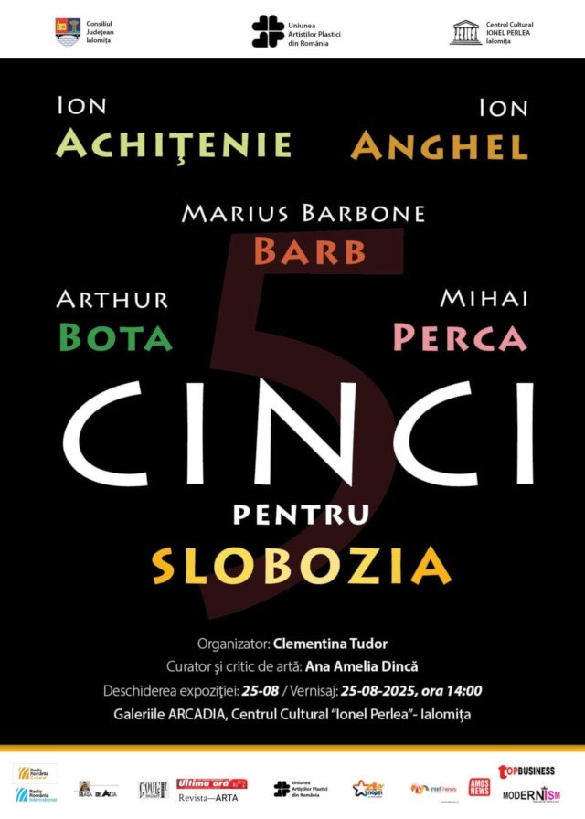 „Cinci pentru Slobozia”: Ion Achițenie, Ion Anghel, Marius Barb Barbone, Arthur Bota și Mihai Perca, la Centrul Cultural UNESCO „Ionel Perlea” din Slobozia