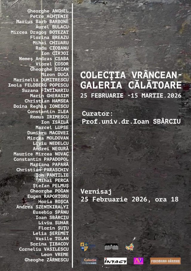 Muzeul de Artă Cluj-Napoca, instituție publică de interes județean, care funcționează sub autoritatea Consiliului Județean Cluj, vă invită să vizitați, în perioada 25 februarie – 15 martie 2026, expoziția „Colecția Vrâncean – Galeria călătoare”. Vernisajul va avea loc în data de 25 februarie 2026. Cu această ocazie, vor lua cuvântul prof. univ. dr. Ioan Sbârciu, curatorul expoziției, și colecționarul Nicolae Ioan Vrâncean.