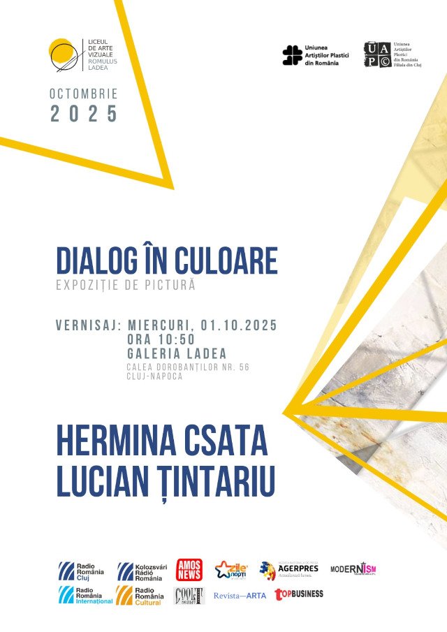 Vă invităm la vernisajul expoziției colegilor noștri Hermina Csata și Lucian Țintariu. Acest eveniment marchează un frumos moment în colaborarea dintre cei doi artiști, membri ai Filialei Cluj-Napoca a UAPR și colectivul profesorilor Liceul de arte vizuale „Romulus Ladea” Cluj-Napoca.