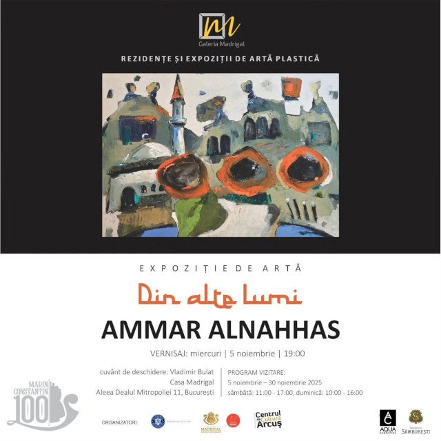 Vernisajul are loc în prezența artistului Ammar Alnahhas și a istoricului de artă Vladimir Bulat. Evenimentul se desfășoară miercuri, 5 Noiembrie, de la ora 19:00, la Casa Madrigal din Aleea Dealul Mitropoliei nr. 11, București.”