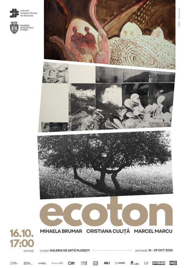 Joi, 16 octombrie 2025, ora 17.00, la Galeria UAP din Ploiești, va avea loc vernisajul expoziției 𝗘𝗖𝗢𝗧𝗢𝗡, care prezintă lucrări de grafică, pictură și fotografie semnate de Mihaela Brumar, Cristiana Culiță și Marcel Marcu.