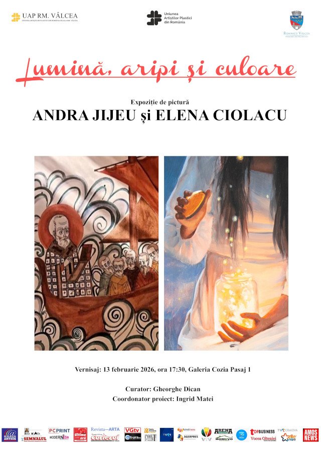 Filiala Râmnicu Vâlcea a Uniunii Artiștilor Plastici din România, în parteneriat cu Primăria Municipiului Râmnicu Vâlcea, cu Fotoclubul „Floarea de Colț” și cu Uniunea Artiștilor Plastici din România, organizează vineri, 13 februarie 2026, următoarele vernisaje: