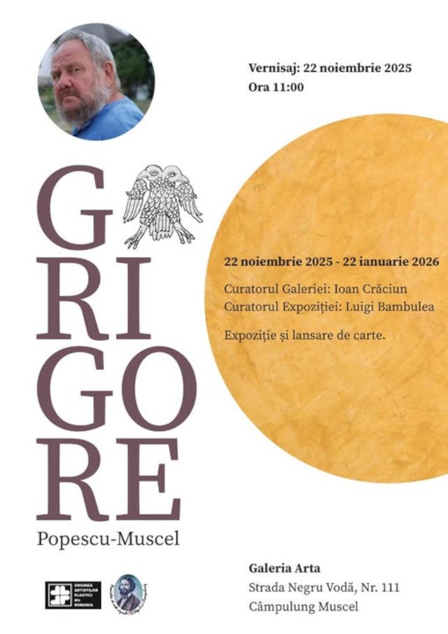 Galeria Arta din Câmpulung Muscel este din nou gazda unei expoziții marca ,,GRIGORE POPESCU-MUSCEL”, cu vernisaj sâmbătă, 22 noiembrie 2025, ora 11.00.