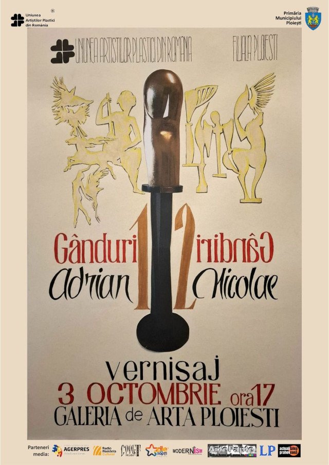 Vineri, 3 octombrie 2025, la ora 17, la Galeria de Artă Ploiești are loc vernisajul expoziție „Gânduri – Gândiri” a artistului Adrian Nicolae. Cu un palmares deloc de neglijat, dar caracterizat de o structură fără dorința de a fi vedetă el își vede cu tenacitate de arta lui.