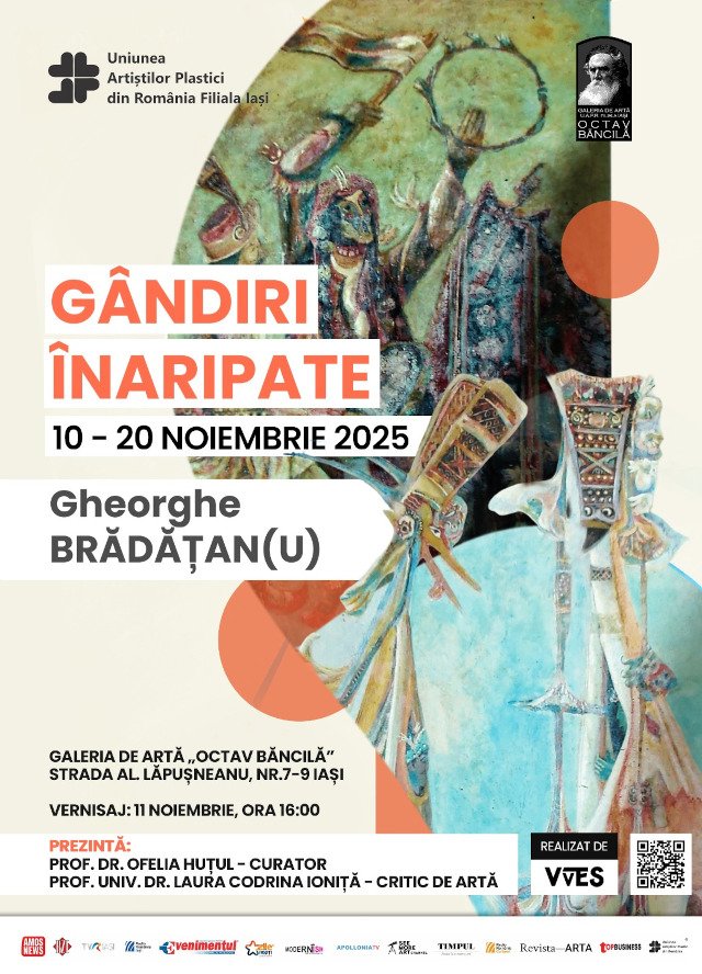 Uniunea Artiștilor Plastici din România Filiala Iași are plăcerea de a vă invita să vizitați expoziția retrospectivă „Gânduri Înaripate” unde vor fi expuse lucrări de pictură și ceramică semnate de artistul Gheorghe Brădățan(u).