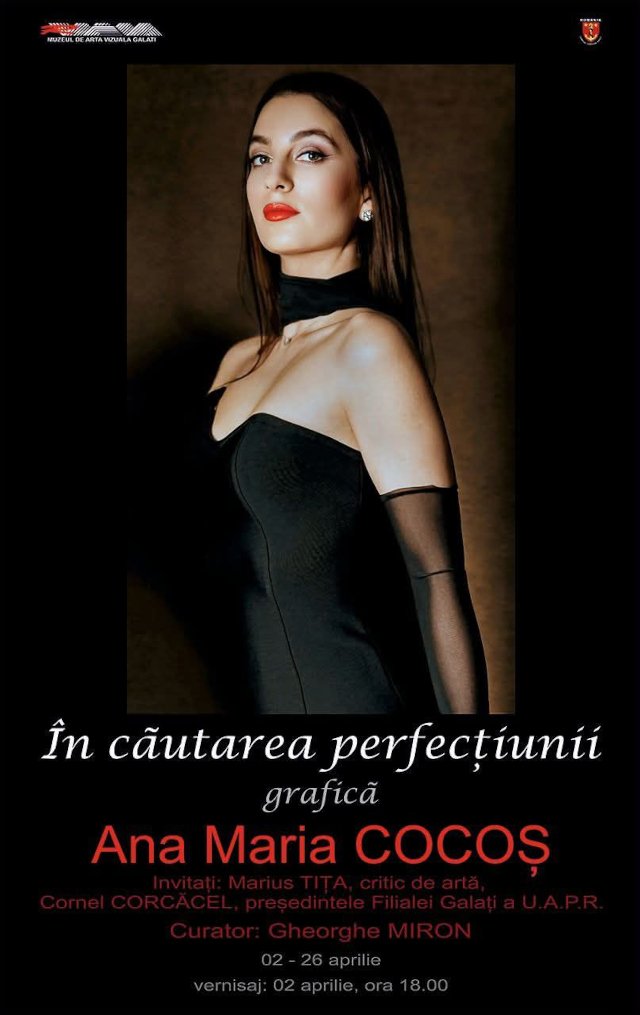 Joi, 2 aprilie 2026, ora 18.00, la Muzeul de Arta Vizuala Galati va avea loc deschiderea expoziției de grafică a artistei Ana Maria COCOȘ „În căutarea perfecțiunii”.