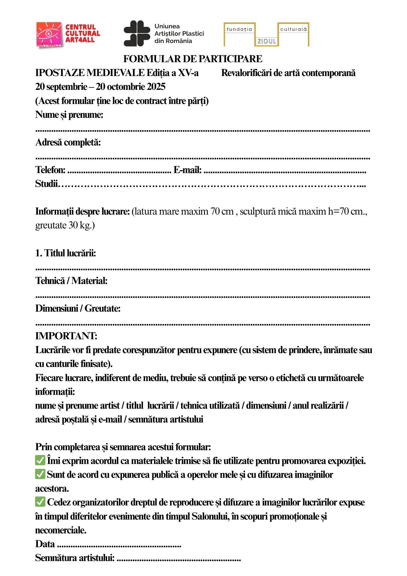 • Înscrierea se va face online pe mail art4allartapentrutoti@gmail.com până pe data de 5 SEPTEMBRIE 2025