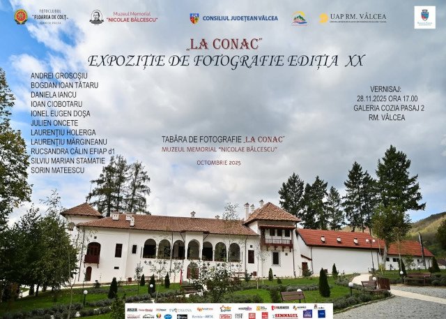 Filiala Râmnicu Vâlcea a UAP din România, în parteneriat cu Primăria Municipiului Râmnicu Vâlcea și cu Uniunea Artiștilor Plastici din România, organizează în data de 28 noiembrie 2025 la ora 17ꓽ00, în Galeria Cozia Pasaj 2, vernisajul expoziției de fotografie „La Conac” a Fotoclubului „Floarea de Colț”.