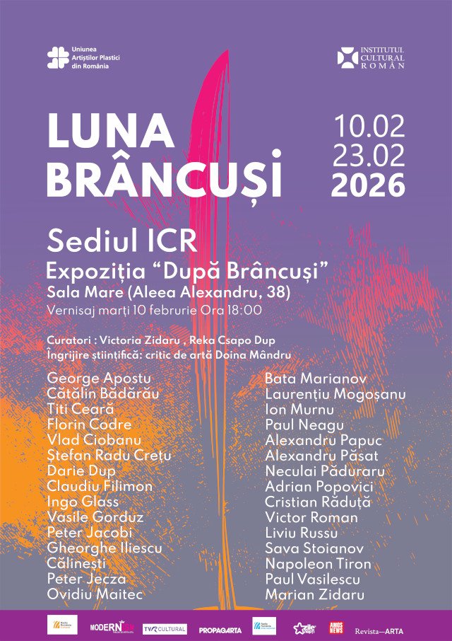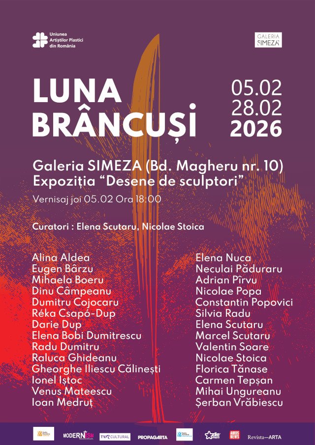 Evenimentul central va avea loc în data de 10 februarie 2026, sub forma unei expoziții a excelenței, în care Filiala de Sculptură invită nume consacrate ale sculpturii românești – artiști care au continuat, au dezvoltat și au dus mai departe flacăra creativă aprinsă de Constantin Brâncuși.