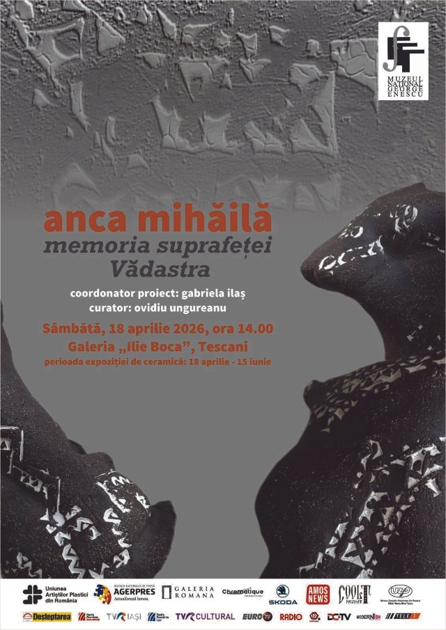 Muzeul Național „George Enescu” deschide sâmbătă, 18 aprilie 2026, ora 14.00, la Galeria „Ilie Boca” a secției „Dumitru şi Alice Rosetti Tescanu – George Enescu” din Tescani expoziția de ceramică „Memoria suprafeței, Vădastra” a artistei Anca Mihăilă.