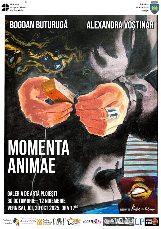 Joi, 30 octombrie 2025, la ora 17, la Galeria de Artă Ploiești va avea loc vernisajul expoziției de pictură „Momenta animae” a artiștilor Alexandra Voștinar și Bogdan Buturugă.
