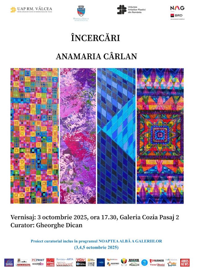 Filiala Râmnicu Vâlcea a Uniunii Artiștilor Plastici din România, în parteneriat cu NAG (Noaptea Albă a Galeriilor), cu Primăria Municipiului Râmnicu Vâlcea, cu River Plaza Mall și cu Uniunea Artiștilor Plastici din România organizează vineri, 3 octombrie 2025, următoarele vernisajeꓽ