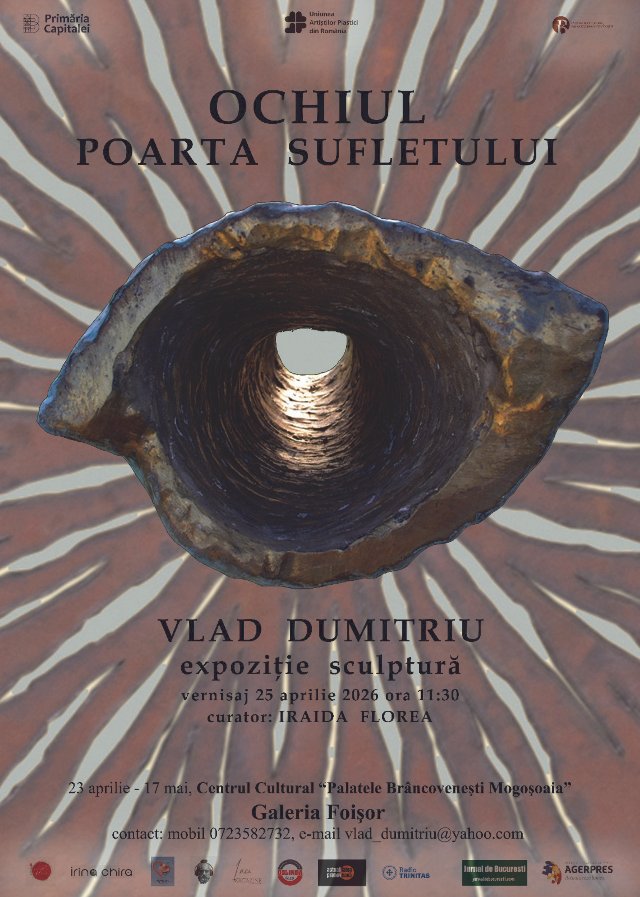 Vernisajul expoziției „Ochiul – Poarta Sufletului” semnată de Vlad Dumitriu – un demers artistic ce explorează simbolul ochiului ca spațiu de trecere între interior și exterior, între materie și conștiință – va avea loc sâmbătă, 25 aprilie 2026, la ora 11:30, la Centrul Cultural „Palatele Brâncovenești Mogoșoaia” – Galeria Foișor.