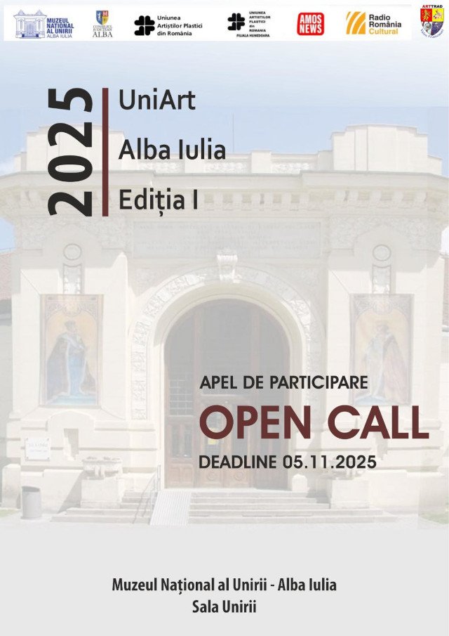 A fost lansat Open Call-ul pentru UniArt 2025 – Ediția I, un nou eveniment expozițional internațional dedicat artelor vizuale, care va avea loc în perioada 21 noiembrie – 7 decembrie 2025 la Muzeul Național al Unirii Alba Iulia – Sala Unirii.