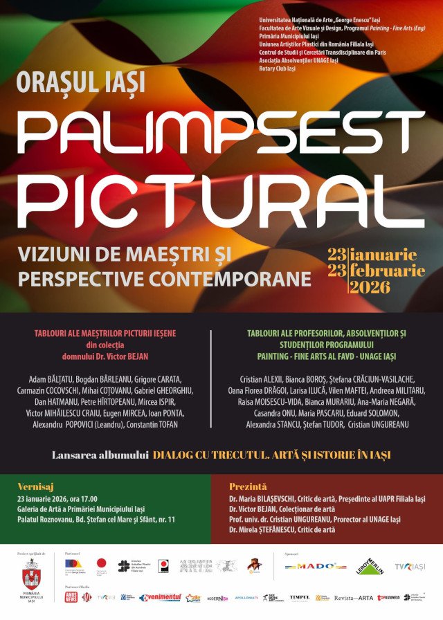 Universitatea Națională de Arte „George Enescu” (UNAGE) Iași, în parteneriat cu Primăria Municipiului Iași și Uniunea Artiștilor Plastici din România – Filiala Iași, are plăcerea de a anunța deschiderea expoziției „ORAȘUL IAȘI – PALIMPSEST PICTURAL. VIZIUNI DE MAEȘTRI ȘI PERSPECTIVE CONTEMPORANE”.