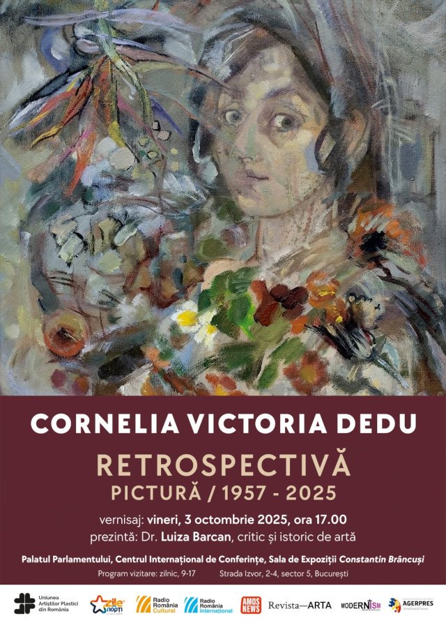 Vineri, 3 octombrie, la ora 17, la Sala de expoziții „Constantin Brâncuși” a Palatului Parlamentului va avea loc vernisajul expoziției retrospective a artiste Cornelia Victoria Dedu. Vor putea fi admirate lucrări din perioada 1957 – 2025.