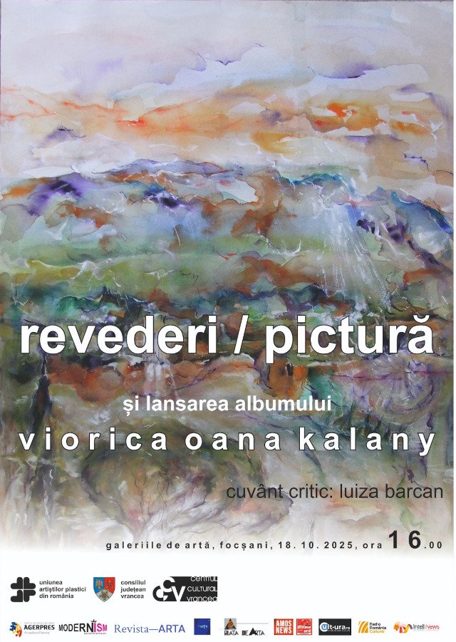 Filiala Vrancea a Uniunii Artiștilor Plastici din RomâniașiCentrul cultural Vrancea sub egida Consiliului Județean Vrancea, organizează sâmbătă, 18 octombrie 2025, de la ora16.00, la Galeriile de Artă din Focșani, expoziția de pictură Revederi a artistei plastice Viorica Oana Kalani.