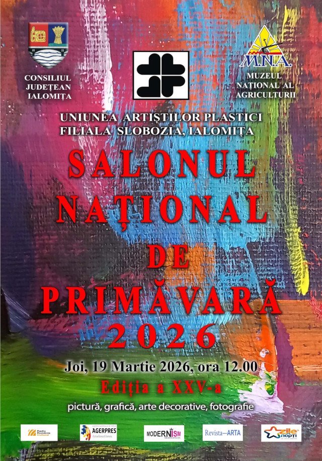 Uniunea Artiștilor Plastici din România – Filiala Slobozia, Ialomița, în parteneriat cu Consiliului Județean Ialomița și cu Muzeul Național al Agriculturii, organizează joi, 19 martie 2026, începând cu ora 12:00, expoziția „Salonului Național de Primăvară 2026”, eveniment care va avea loc la sediul muzeului.