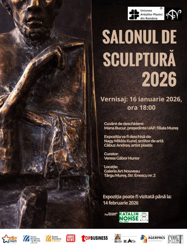 Galeria Art Nouveau din Târgu Mureș va găzdui vineri, 16 ianuarie, de la ora 18 deschiderea Salonului de sculptură 2026. Curator: Veress Gabor Hunor.