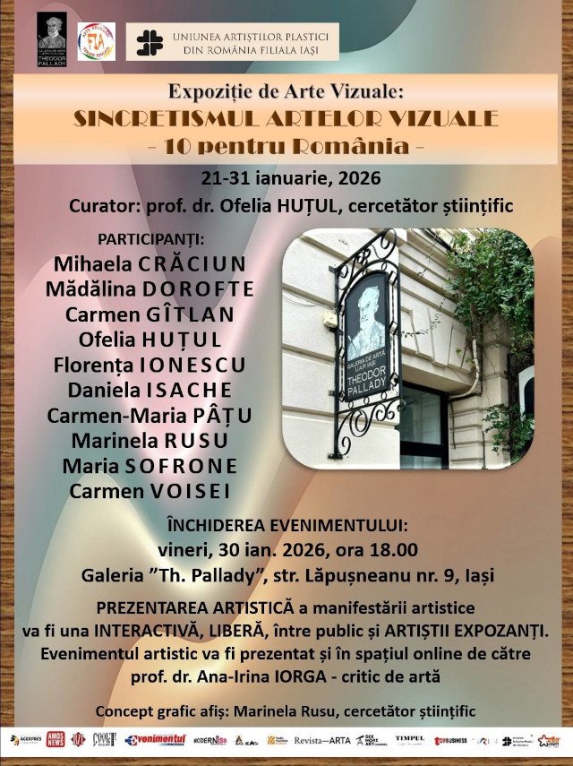 SINCRETISMUL ARTELOR VIZUALE – 10 pt. România – Expoziție de GRUP la Galeria „Th. Pallady”, Iași.
