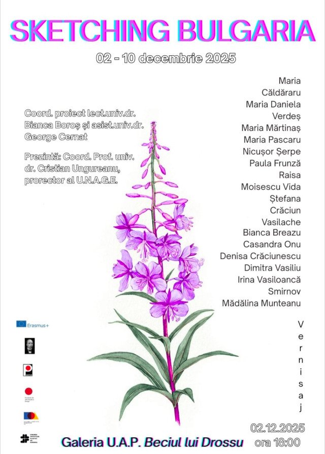 Vă invităm cu drag la vernisajul expoziției ,,Sketching Bulgaria”, ce va avea loc pe data de 2 decembrie, ora 18:00 la galeria U.A.P.R. ,,Beciul lui Drossu”, de pe str. Lăpușneanu.