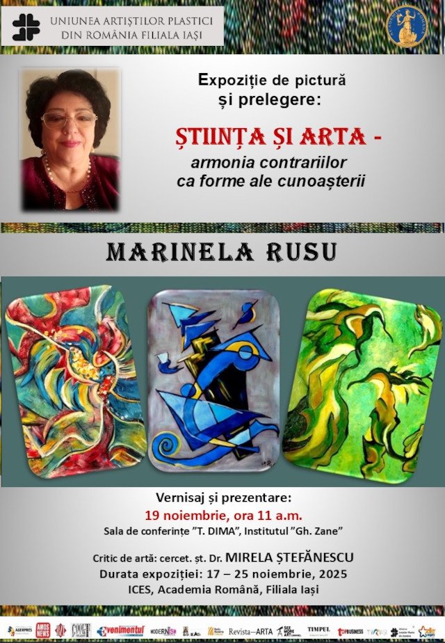 Expoziție de pictură și prelegere: Știință și arta – armonia contrariilor ca forme ale cunoașterii semnată de artista Marinela Rusu.