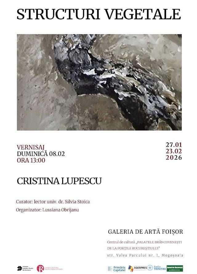 Centrul Cultural „Palatele Brâncovenești de la Porțile Bucureștiului” găzduiește, în perioada 27 ianuarie – 23 februarie 2026 expozitia de pictura – STRUCTURI VEGETALE -Galeria FOIȘOR